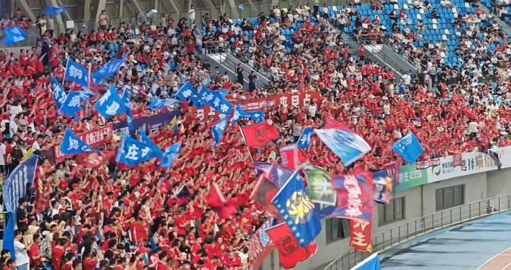 另外,在体育场看台上,球迷们还挥舞着临沂、亳州、阜阳、萧县、周口、枣庄、宿州等城市的旗帜为徐州加油助威。
