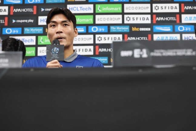 昨日(6日),东亚杯赛前新闻发布会在韩国龙仁市龙体育场进行。中国队球员张玉宁、日本队球员长友佑都、韩国队球员朴镇燮、中国香港队球员李家豪同时出席。