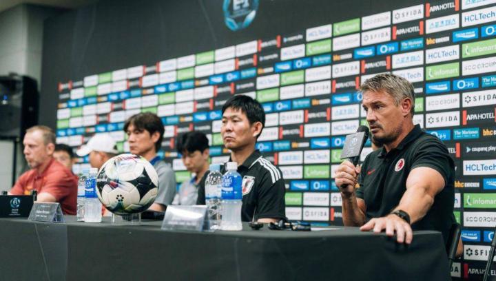 昨日(6日),东亚杯赛前新闻发布会在韩国龙仁市龙体育场进行。中国队代理主教练久尔杰维奇、日本队主教练森保一、韩国队主教练洪明甫、中国香港队主教练阿什利-韦斯特伍德同时出席。