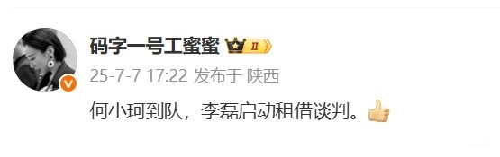 北京时间7月7日,《足球》报记者鲁蜜透露了有关河南队夏窗引援工作的情况:“何小珂到队,李磊启动租借谈判。”