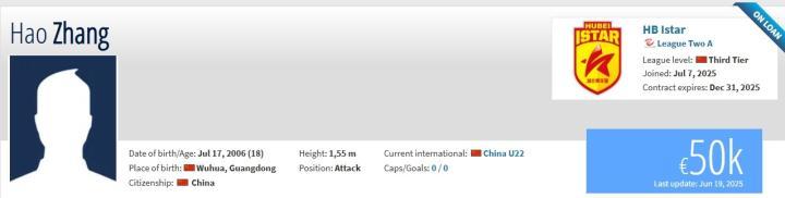 北京时间7月7日,根据德国转会市场网站更新的信息显示,梅州客家小将张昊夏窗被租借至中乙湖北青年星效力。