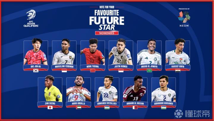 北京时间7月8日,亚预选第三轮结束后,亚足联评选出 11 名各国表现出色的年轻球员,邀请球迷票选最爱的新星。其中,王钰栋入选,铃木彩艳、胡桑诺夫在列。