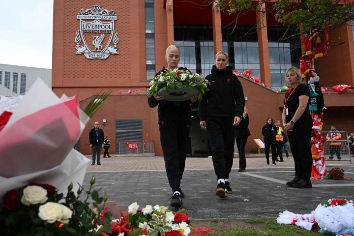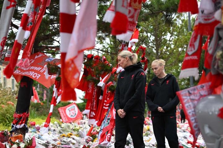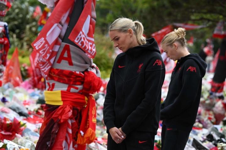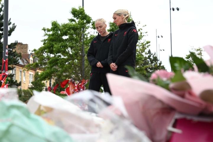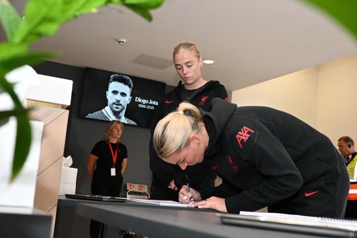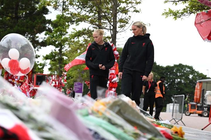 两位球员在球场内为悼念这对兄弟而开设的吊唁簿上签名,并代表利物浦女足敬献花圈,她们还代表球队向过去几天在安菲尔德球场外献上的众多悼念者致以敬意。