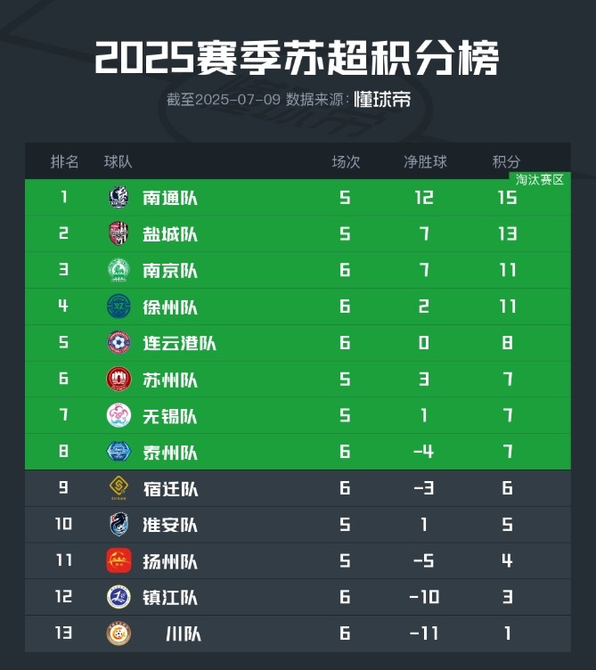目前,苏州队战绩1胜4平保持不败,排在“苏超”积分榜第六位。