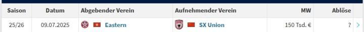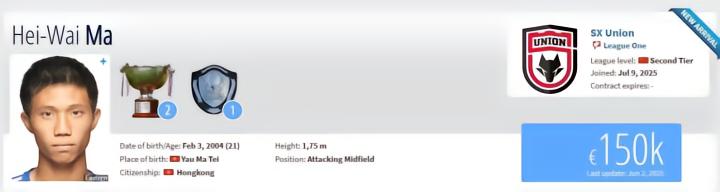 北京时间7月9日,根据德国转会市场网站更新的信息显示,21岁的中国香港球员马希伟转会加盟中甲陕西联合俱乐部。