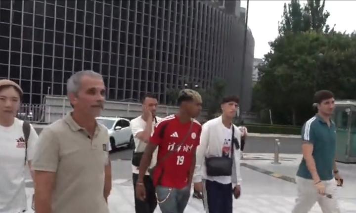 亚马尔身穿的是一件红色的清华附中19号球衣,19号也是他在巴萨的球衣号码。