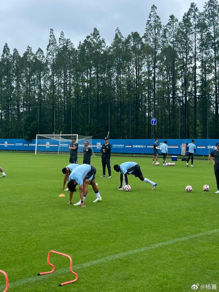 该记者表示:“申花今日开放日训练,因为国际比赛日抽调的原因,加上一些伤病情况。今天加上3名门将只有16人参加训练。”