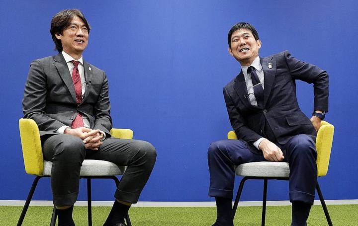 近日,韩国队主帅洪明甫和日本队主帅共同接受了媒体的专访,二位同龄且经历相似的主帅谈及了过去这些年日韩两国足球的发展以及自己的执教理念,并分享了各自对于美加墨世界杯的期待。