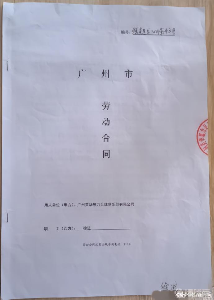 2、2024年7月-2025年6月1日徐进就职于广州英华思力足球俱乐部有限公司,作为13梯队主教练芳贺敦的翻译