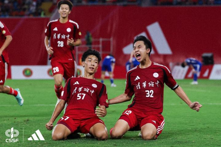 女子组比赛结束后,清华附中和长沙麓山国际实验学校的男子组决赛也拉开了帷幕。从纸面实力来看,清华附中毫无疑问占据着优势,他们阵中的周雨诺和南子勋曾入选过中国U16,周雨诺还曾在对阵乌兹别克斯坦U16的比赛中打进一球帮助国少取胜。而这样的纸面实力也映射到绿茵场上,比赛开始后清华附中便牢牢掌控着比赛节奏,陷入被动的麓山国际只能拼命奔跑努力争抢,而这样高强度的对抗和奔跑也使得他们阵中多名球员在60分钟开始就遭遇抽筋,最终,依靠着更为出色的技战术和身体素质,清华附中2-0战胜长沙麓山国际实验学校成功捧杯。