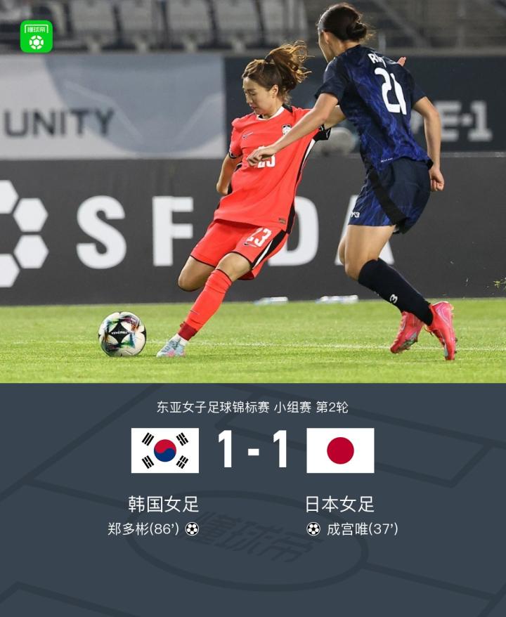 韩国女足1-1日本女足,成宫唯破门,文恩珠助攻郑多彬绝平