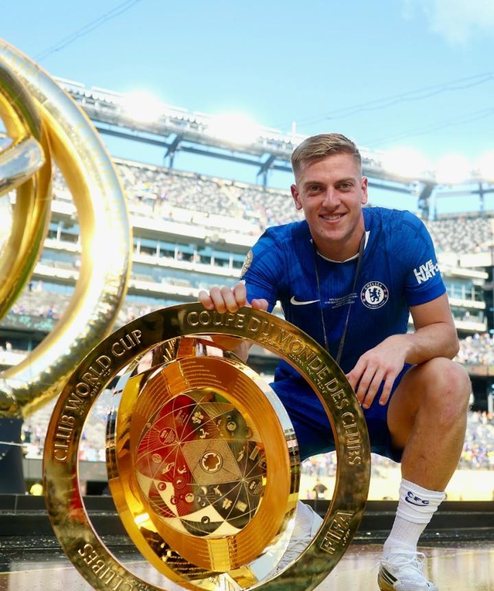 切尔西在世俱杯决赛3-0完胜巴黎,新援德拉普在本场比赛替补登场,赛后他在个人社媒晒出了和奖杯的合照。
