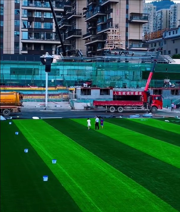 官方写道:一抹希望的绿,村超球场草坪铺设中!两次遭遇洪水终于重见绿茵,涅槃重生,期待7月26日村超归来!