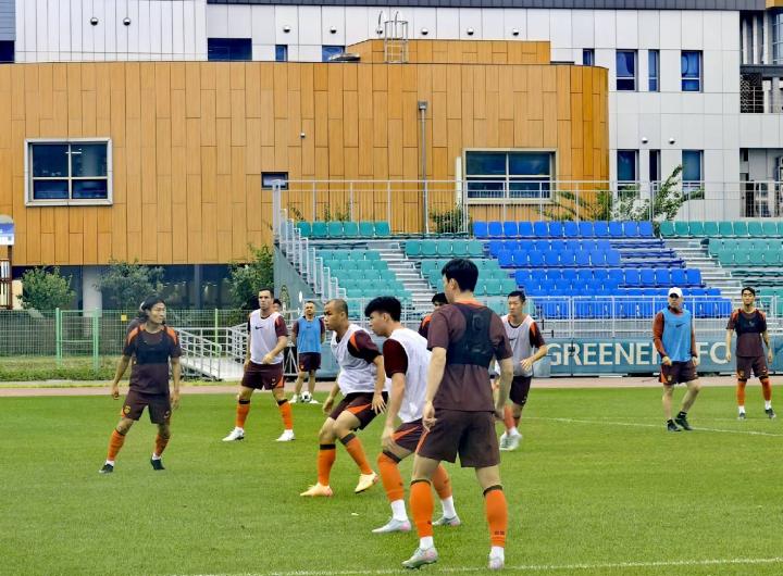 据懂球帝前方记者@雷杰深 现场报道,当地时间7月14日,中国男足在韩国安山市的安山体育场外场训练,备战和中国香港队的东亚杯最后一轮比赛。