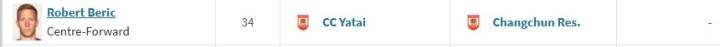 此前,贝里奇共代表长春亚泰队出战44场比赛,贡献16粒进球和8次助攻。