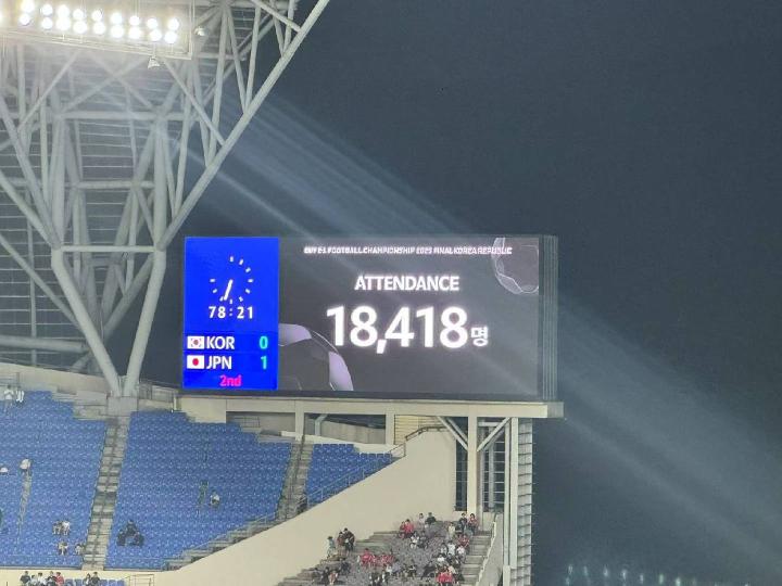 北京时间7月15日,东亚杯第三轮,韩国队对阵日本队。据懂球帝前方记者报道,本场比赛吸引了18418名球迷。