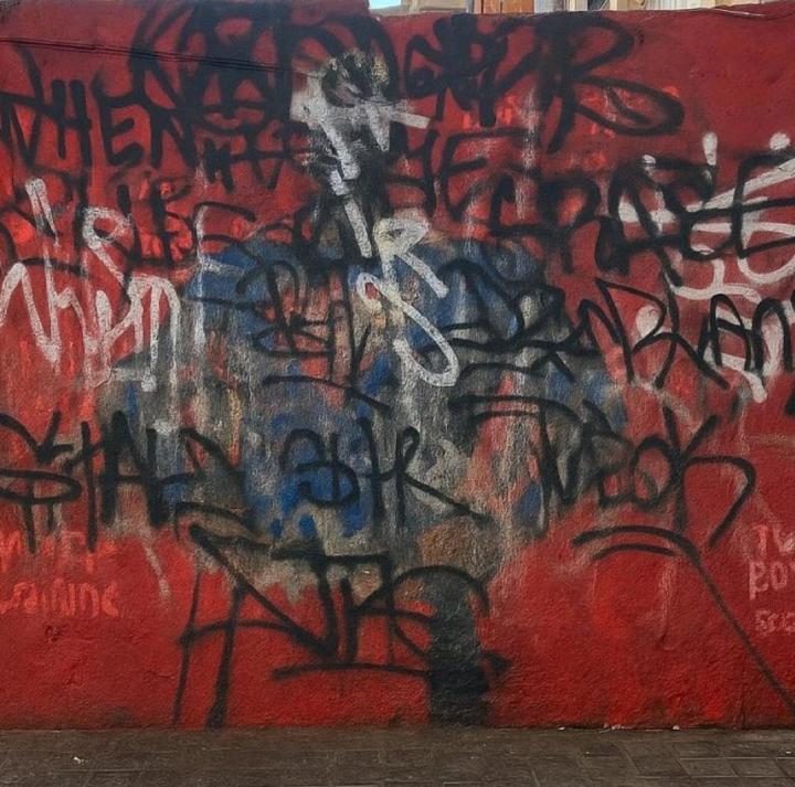 这个壁画刚完工时,在红色的背景上,这位足球运动员面带微笑,自信满满,双臂交叉,旁边写着“当意志强大时,障碍就会变小”以及“超级拉明”。胸前的标志是字母“L”而非标志性的“S”