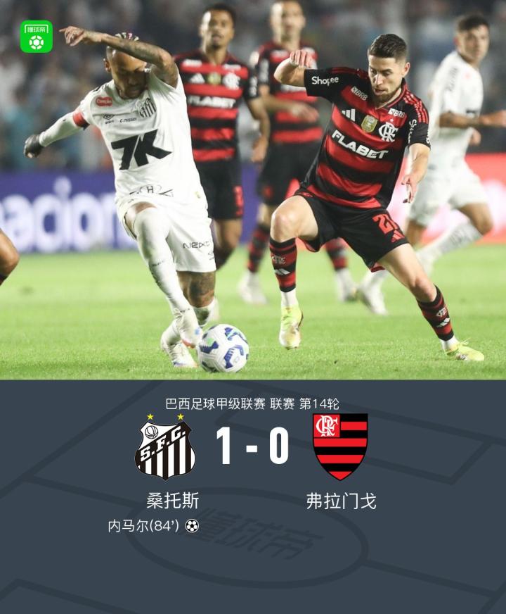 桑托斯1-0弗拉门戈,内马尔打进制胜球