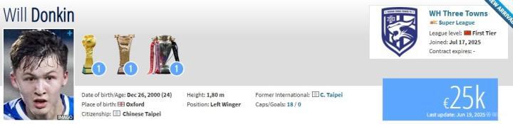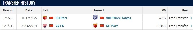 北京时间7月17日,德转更新,上海海港的中国台北前锋沈子贵自由身加盟武汉三镇。