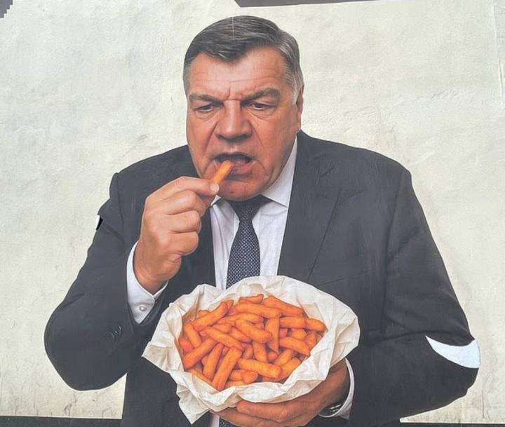 当地时间本周五,英格兰名帅阿勒代斯在社交媒体上发布动态,谈到了在家乡西米德兰兹郡的市场小镇出现的一幅画自己在吃薯条的壁画。
