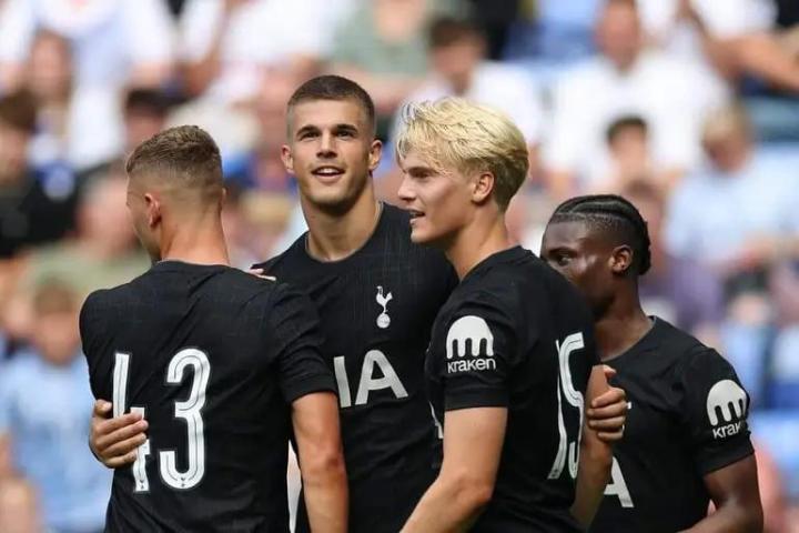 热刺为等待武什科维奇已经耗费不少时间。他们早在2023年9月就从哈伊杜克敲定了这位中卫的签约,但直到他今年年初年满18岁后才正式加盟,因此他直到本赛季季前才来到热刺训练基地。这位年轻人的首秀值得铭记,也确实值得等待。在热身时的传球演练中,他已经展现出自己的能力。当他被逼至角落时,他灵巧地将球挑过卢卡斯-贝里瓦尔的头顶。