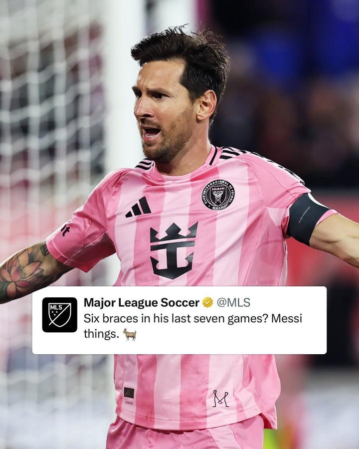 北京时间7月20日,美国职业大联盟常规赛,迈阿密国际在客场5-1大胜纽约红牛。本场比赛,梅西贡献2球1助当选全场最佳球员。赛后,美职联官方社交媒体发文盛赞了梅西近期的表现。