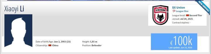 另外,根据德国转会市场网站上的信息显示,李小一夏窗加盟陕西联合的转会费为4.2万欧元(折合人民币约35万元)。
