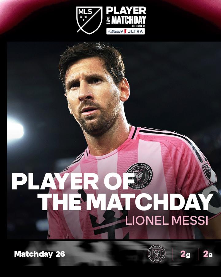 这样的表现使得梅西当选了美职联常规赛第26轮最佳球员,此前他已经当选了第23轮和第24轮的最佳球员,这也是他本赛季第11轮当选美职联常规赛的单轮最佳。