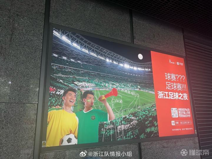 这是一则宣传浙江足球之夜的广告,但是画面中的背景却是北京的工人体育场,球迷所在的区域还有“浙江加油”四个字。