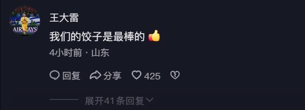 在评论区,大多数球迷都对她表达了支持,其中王大雷也在下面留言道:“我们的饺子是最棒的。”