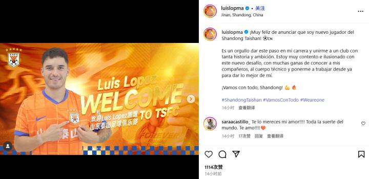 北京时间7月21日,山东泰山俱乐部官方宣布,签下西班牙后卫路易斯-洛佩斯。早些时候,路易斯-洛佩斯在社交媒体发文表示,自己很高兴成为泰山队的一员,并且已经准备好接受新的挑战。