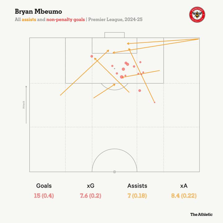 他是一名创造者。虽然他曾经能够打入精彩的进球,但不要期待每个进球都如此炫目。姆伯莫将传统边锋内切破门练得炉火纯青。他并非每次都能过掉盯防者,但一旦成功,这位上赛季为布伦特福德踢满全部38场英超比赛、打入20球并完成8次助攻的球员,很可能会创造出一次得分机会。