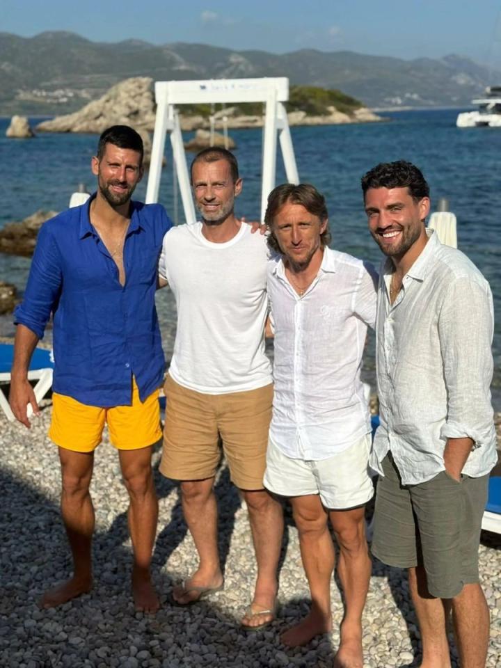 这些游客包括克罗地亚国脚莫德里奇和科瓦契奇、欧足联主席切费林以及塞尔维亚网球天王德约科维奇,他们相聚在了当地的一家海滩酒吧。