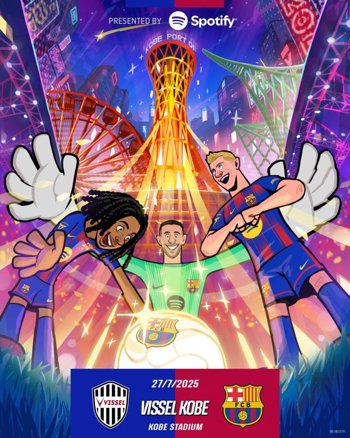 北京时间今晚6点,巴萨即将在亚洲行第一站迎战神户胜利船。赛前,巴萨官方发布了预热海报,其中霍安-加西亚位居C位。