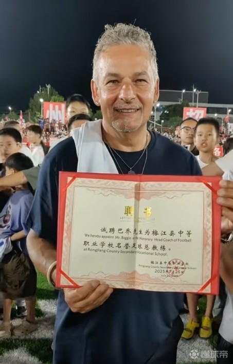 在现场,巴乔受聘为榕江县中等职业学校名誉足球总教练,卡洛斯为名誉足球顾问。
