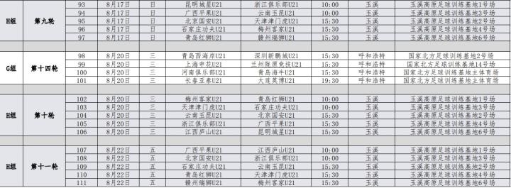 玉溪赛区 8月20日15:30 云南玉昆U21vs北京国安U21