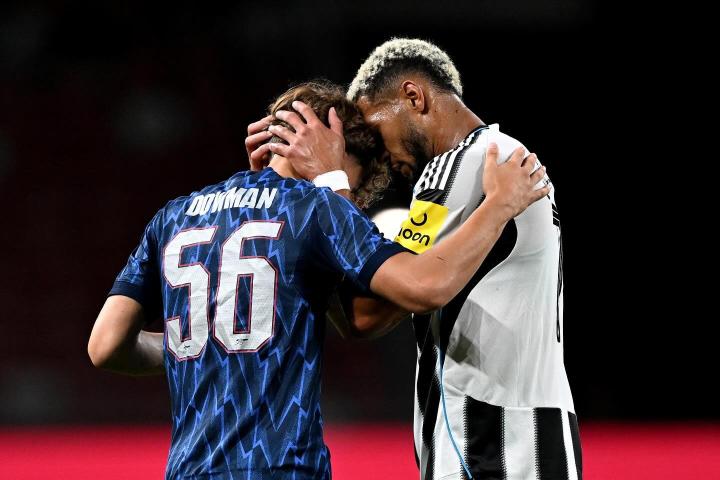 昨日,阿森纳友谊赛3-2战胜纽卡。阿森纳15岁小将道曼表现出色,制造一粒点球。赛后,道曼更新社媒,晒出与塔帅对视照,并配文“多么美好的夜晚”。