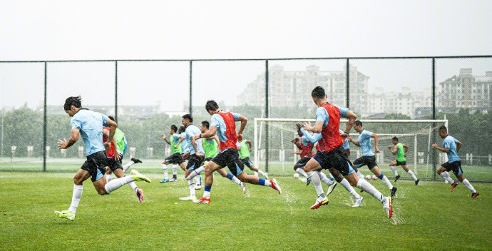 7月30日,上海申花官方发布了组图,并配文“邂逅大雨中的‘浪漫’”,内容为申花全队在暴雨中训练。由于受到台风“竹节草”的影响,上海今日雨势非常大。