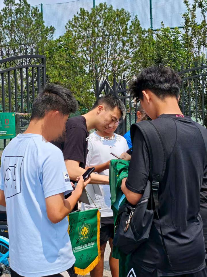 北京时间8月1日,博主“埃莱夫赛”分享了国安门将韩佳奇归队的照片。