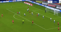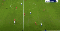 第45+3分钟,周定洋禁区中路插上抽射,王大雷扑出皮球