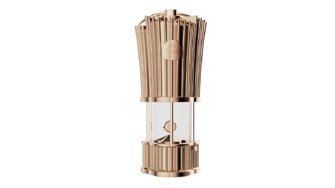 十五运会和残特奥会火种盆名为“鼎盛同心”,又名“同心鼎”,以丙烷为燃料,使用金属材料及喷高温漆工艺制作,整体呈金色,高1080毫米,口部最大直径800毫米,净重约60公斤。设计灵感源自古代瓷器“花觚(gū)”,作为礼制象征与工艺结晶,既承载了传统礼器的庄重典雅,又彰显了当代艺术的审美追求,与火炬“绽放”相映成趣。底部整体为圆柱支撑,上层两部分口径逐次增大,寓意在团结一心的努力下,祖国一步一步强大;顶部为燃烧器,顶端焰口三瓣礼花同根共绽,寓意三地人民心手相牵,共同迈向繁荣新时代。