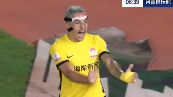 戴维森:“之前对阵北京国安的比赛里,不小心把鼻子撞伤了,所以戴上面具来保护一下自己。”