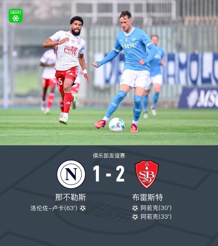 那不勒斯1-2布雷斯特,卢卡破门,德布劳内中柱,阿若克双响