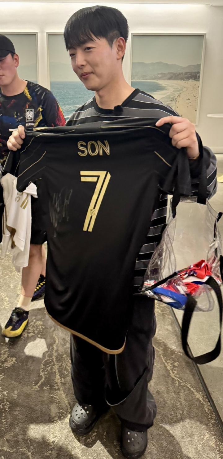 早些时候,记者Favian Renkel更新了社交媒体动态,晒出了一位球迷手持孙兴慜球衣的照片,并配文表示:“这无疑是第一件孙兴慜亲笔签名的洛杉矶FC球衣,独一无二!对这位球迷而言,这个时刻太酷啦,他永远不会忘记这一天。”