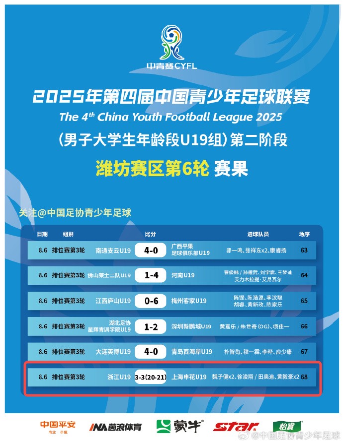 北京时间8月6日,2025年第四届中青赛排位赛第3轮,浙江U19迎战上海申花U19。本场比赛双方在常规时间3-3战平,随后进行的点球大战中,双方进行了21轮的超长鏖战。