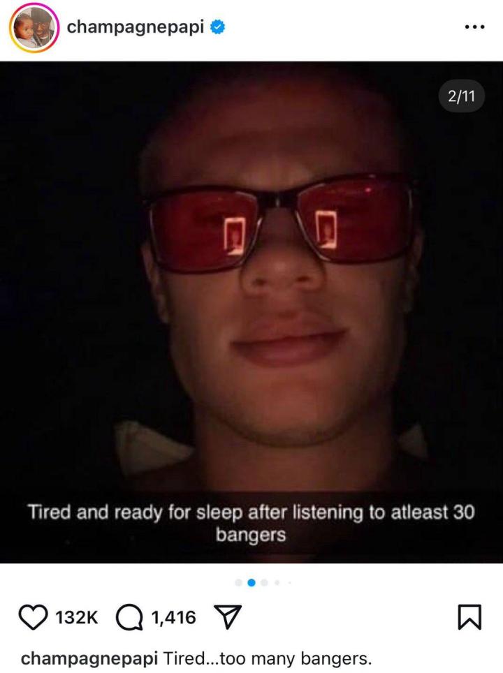 哈兰德文案写道:“听了至少30首狠歌,该睡了。”