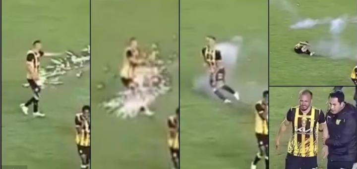 在玻利维亚足球联赛最强者对阵布鲁明的比赛中,戏剧性场面发生在补时阶段。比赛第76分钟,主队球员胡安-戈多伊打入制胜球,帮助最强者以3-2战胜对手。然而,这个进球瞬间点燃了主场球迷的狂热,看台上开始燃放烟花庆祝。不幸的是,补时阶段部分烟花意外落入场内,其中一枚正中了还在场上的进球功臣胡安-戈多伊的裆部。