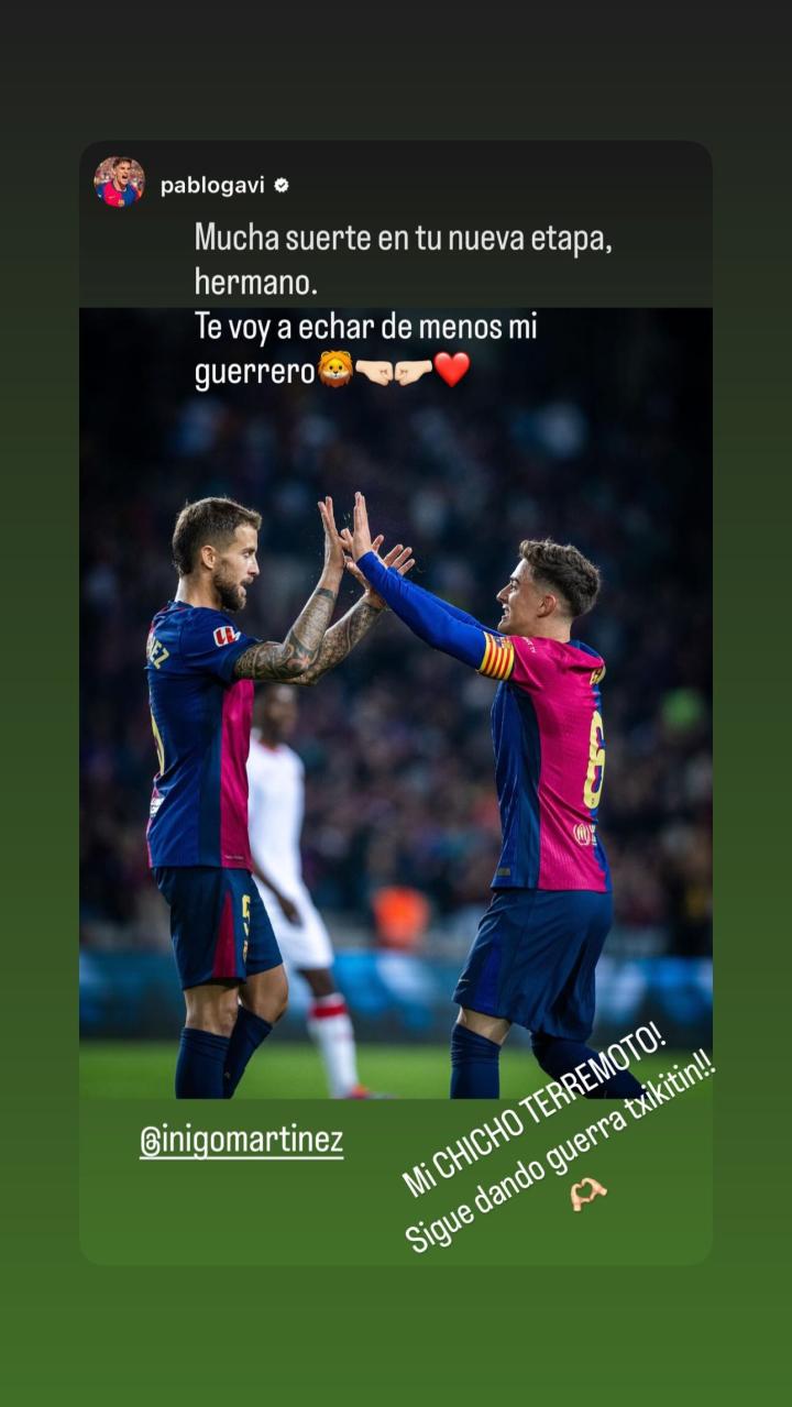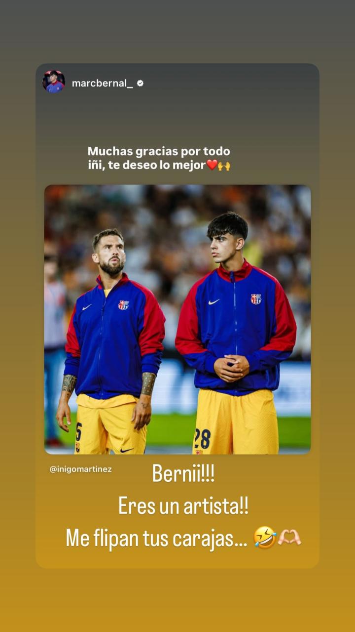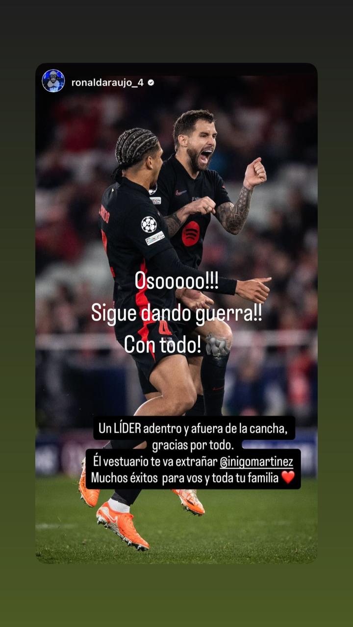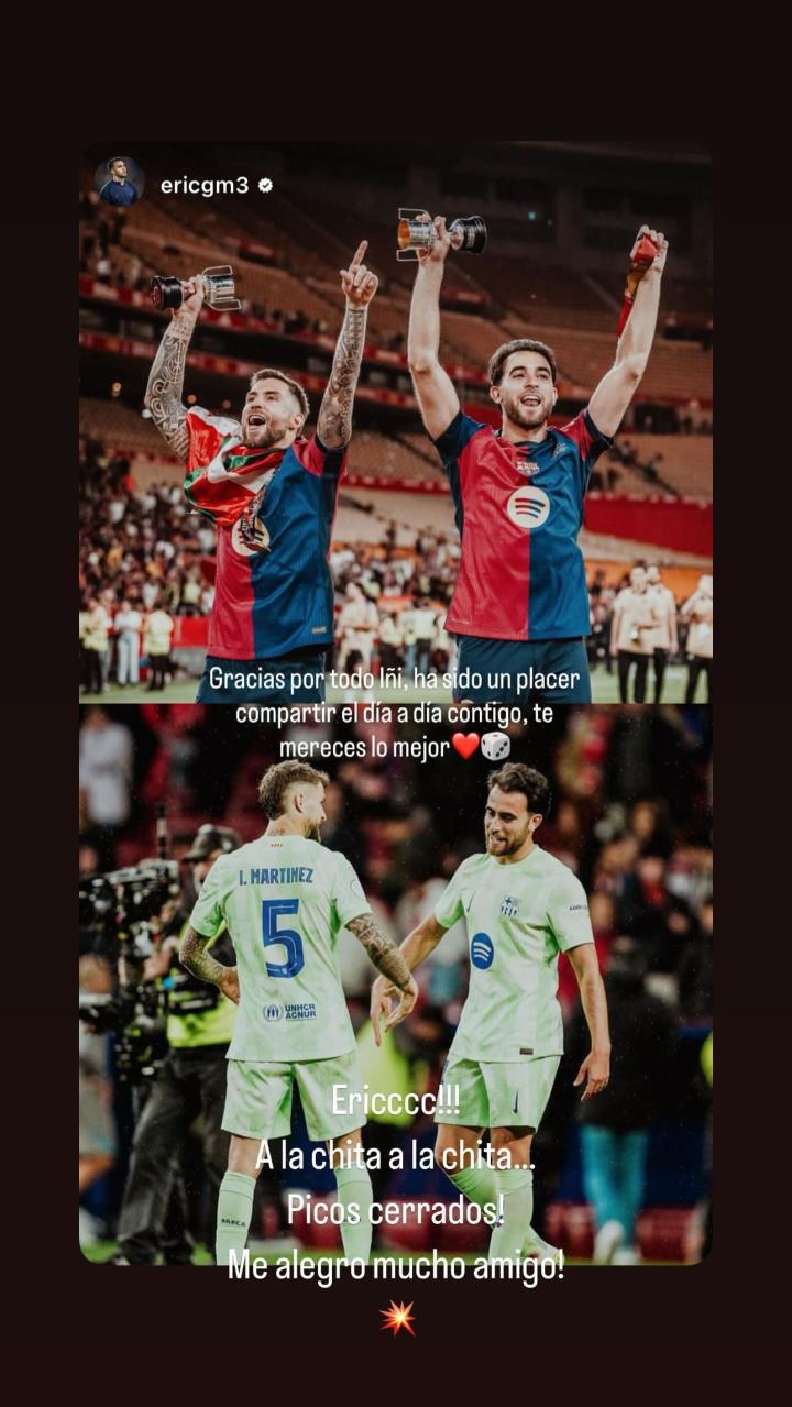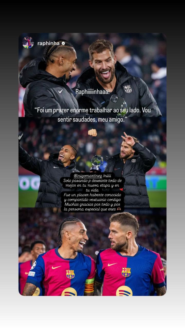 在伊尼戈-马丁内斯离开巴萨的消息确认后,巴萨队友们纷纷在社交媒体告别,伊尼戈-马丁内斯在社交媒体转发了队友们的告别信息并回复。