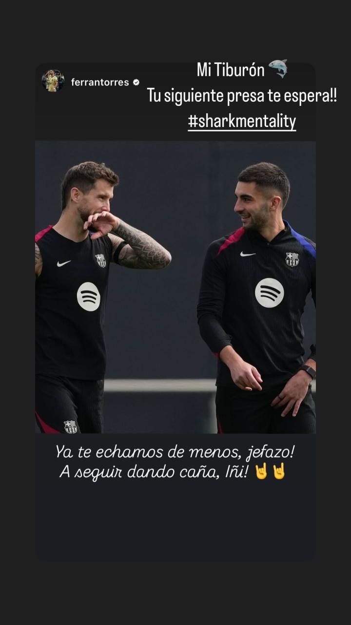 费兰-托雷斯:已经开始想你了,老大!继续加油,伊尼🤘🤘