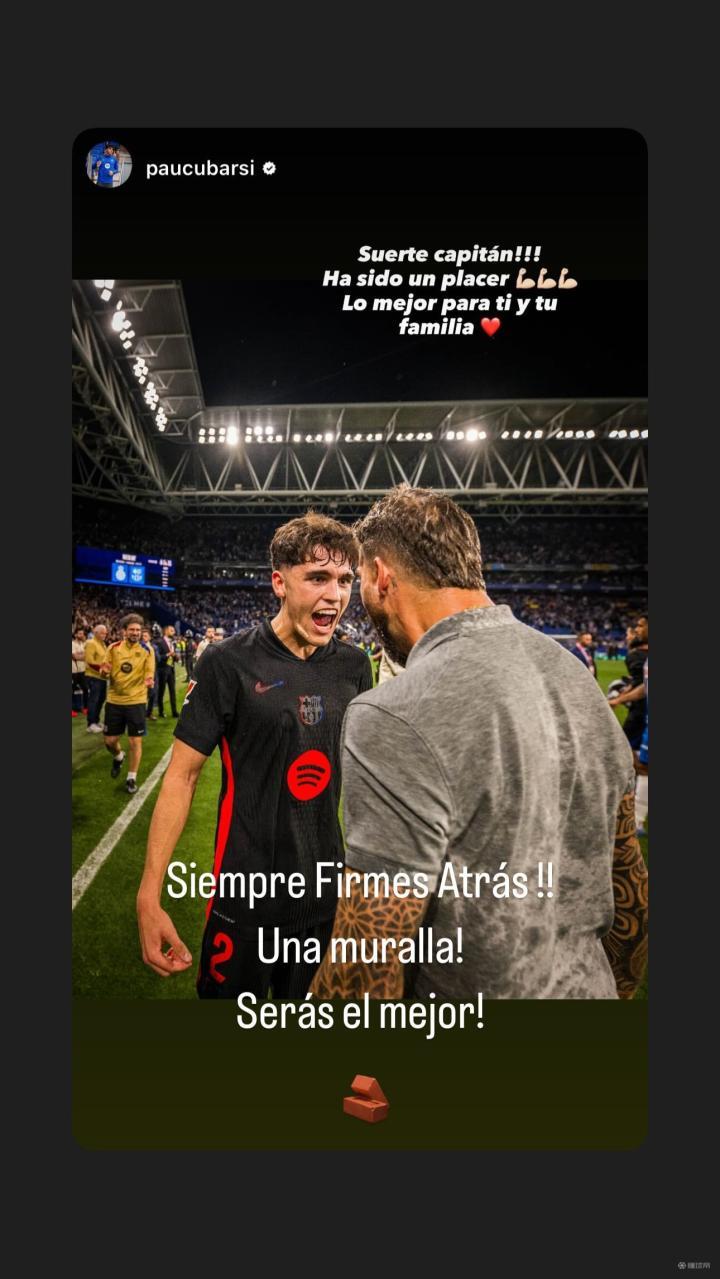 奥尔莫:从第一天起……不仅仅是个队友。场上场下的领导者、榜样和朋友。能与你同队是一种荣幸……祝你和你的家人在这个新的阶段一切顺利。还有,你得告诉我以后和谁一起做拉伸……🤣🤣